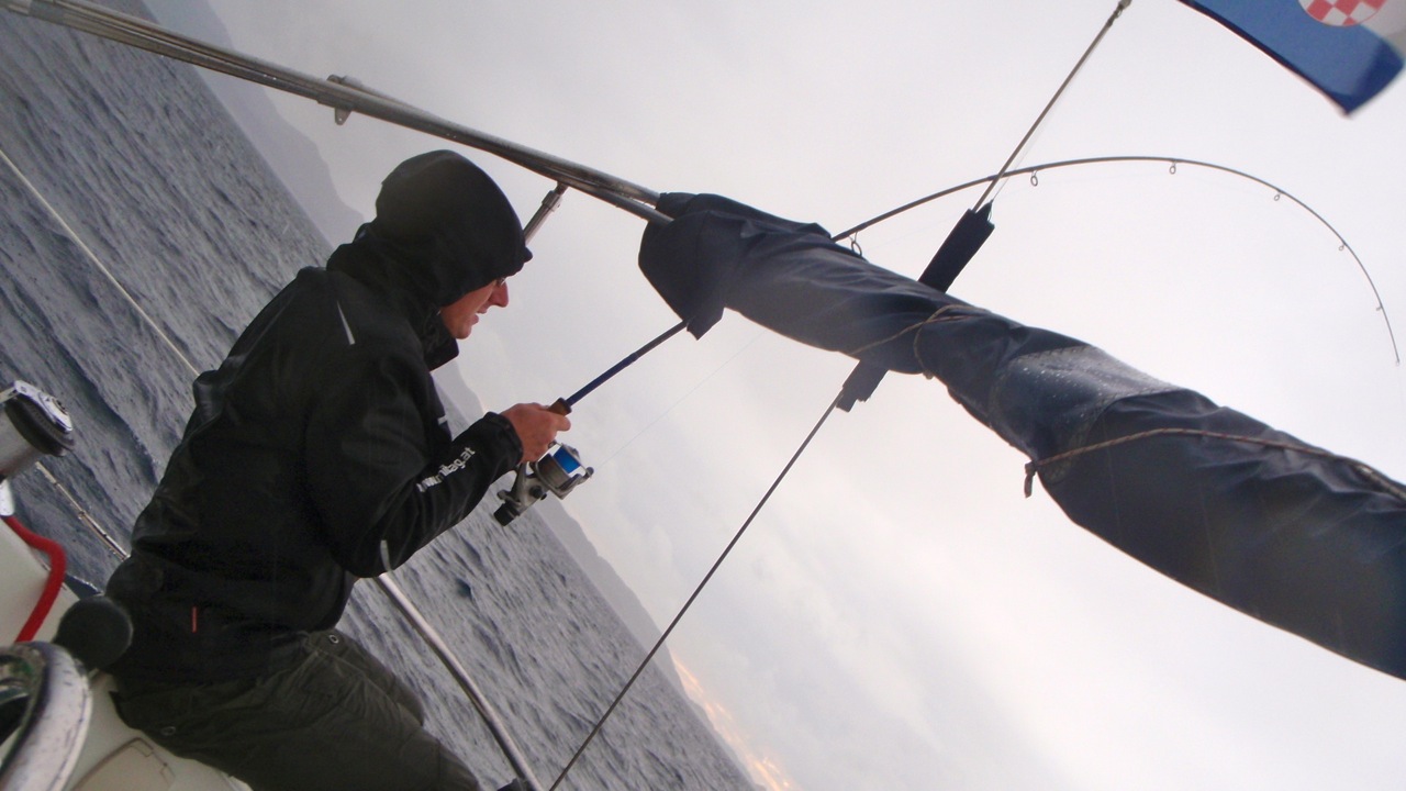 Nedelja se je vsaj začela bolje. Skozi Pelješki kanal smo z zavetju Korčule lepo zdrseli in se nekako prezibali čez valove juga med Korčulo in Mljetom. Toda kmalu po tem, ko smo zapluli v Mljetski kanal, so nas popolnoma zaprli temni oblaki. Popoldne je minilo v dežju in vetru. Lokalne nevihte so se podile med Pelješcem in otokom ter z vodo zalivale barko kot iz gasilske cevi. V trdi temi in močnem nalivu smo zapluli v Sobro na Mljetu. Macchiato, ki se je prvo noč vezala v mestu Korčula, je bila tudi drugi dan toliko pred nami, da se nam je ves čas skrivala za obzorjem. ‘Trupčijada!’ so prihajala sporočila njihove posadke in tudi mi smo ta dan nalovili nekaj fregatnih trupcev. Te ribe so podvrsta tunov in pogosti ulov na naših jadranjih, pa čeprav so naša plovila veliko skromnejša od bojnih ladij, ki jih riba skriva v imenu. V Sobri so nam v lokalni gostilni ulov spekli in zalili smo ga z vinom. Zasluženim.