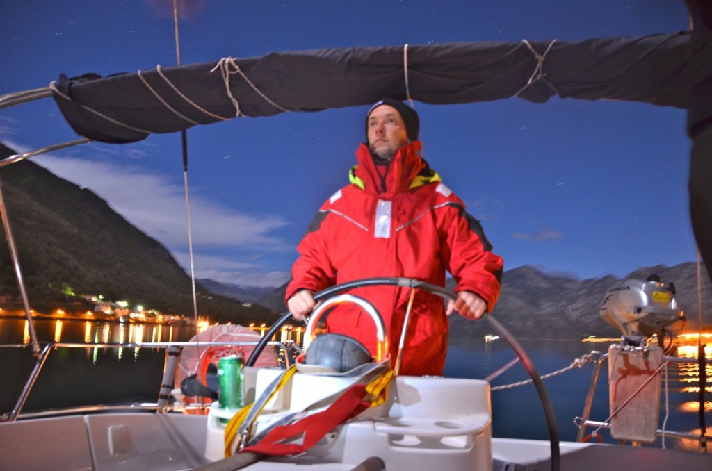 Iz Sobre smo izpluli zgodaj. Še v mraku jutranjih meglic smo po tiho, brez motorja kot ladja duhov odrinili od obale in razpeli jadra v jutranje sapice. Uspel nam je vsaj miren zajtrk z jadri, na koncu Mljeta pa se je tudi morje spet prebudilo. Močan jugozahodnik je pihal v sunkih in skupaj z valovi juga priredil na naši barki pravi rodeo. Med tem smo uspeli zavozlati in potrgati ves ribiški pribor. Vendar smo v vsem tem kaosu nekako le ujeli čudovito zlato skušo, ki je bila več kot očitno prevelika za našo pečico. Pa nič zato. Veliko milj kasneje smo jo spekli ‘per partes’. Med valjanjem mimo Dubrovnika se je skozi temno nebo prebilo sonce, osvetlilo staro mestno jedro, ki je zasijalo na temni kulisi in poskrbelo za nekaj čudovitih prizorov. Vsi, ki nismo bili zadeti od tablet proti slabosti, smo uživali. V Cavtatu je carinski pomol polivalo visoko morje in nismo upali pristati. Primož, ‘osmi potnik’, ki ga je služba prikrajšala za prve tri dni zibanja, dežja in bruhanja, je skočil na kljun barke in odpluli smo okoli polotoka Rat v zavetje zaliva Tiha. Nakup, kosilo in debata, kako naprej. Macchiato je bila že zunaj na odprtem, le še nekaj milj pred Prevlako. Napovedano je bilo postopno umirjanje morja, čeprav so se čez nebo še vedno podile nevihte. Osmi potnik Primož, ves svež in pol jadralnega elana, seveda ni prav dobro razumel, kaj tako cincamo: »Gremo naprej!« »Okej, okej …« Policija nam ni želela potrditi izstopa iz države, če barke ne vidi pred carinskim pomolom. Tako se je naš kapetan odpravil peš vnaprej urejat papirje, mi pa bi naj med tem barko pripeljali okoli polotoka Rat. Toda takoj, ko smo izpluli iz zaliva Tiha, so nas prekrili črni oblaki. Pozen večer se je v hipu spremenil v trdo noč in ulilo se je kakor iz škafa. Med to vodno zaveso smo računali vsaj na luči mesta. Pa se je Cavtat, ko smo pripluli v zaliv, naenkrat ugasnil. Krasno! Trda tema sredi zaliva pod slapom dežja. Prekleti Cavtat! Prekleti poplavljen carinski pomol! Prekleti dež! Ko je naš kapitan v temi stal pred policijsko postajo in s policajem čakal na elektriko, da bi računalniki spet zaživeli in izpljunili naše papirje za Črno goro, so iz vseh ulic drli potoki vode. Izza goste vodne zavese so se v zaliv prizibale lučke naše barke. „Sad’ ćete vi u Crnu goru?“ mu je mirno rekel policaj, kot znajo samo v Dalmaciji. „Pa, pere nas več tri dana, može još jednu noč,“ je zakrilil Igor. „Pa dobro. Barem je onda neki izazov,“ je mirno zaključil policaj, kot znajo samo v Dalmaciji. Kmalu se v je Cavtat spet vrnila elektrika, k nam pa naš kapitan s papirji za Črno goro in „barem neki izazov“ z nočno plovbo ob izpostavljeni obali do Prevlake.