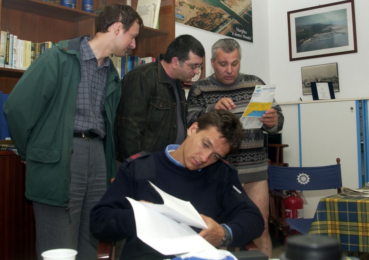 Pričakali so nas trije možakarji, menda člani kluba in lastniki bark v marini, dva karabinjerja in nek civilist. Predvidevam, da je bil inšpektor. Domačini so nam dali ogrinjala, nato pa je Andrej kot skiper podal izjavo za nekakšen preliminaren zapisnik. V italijanščino je prevajal Miran.