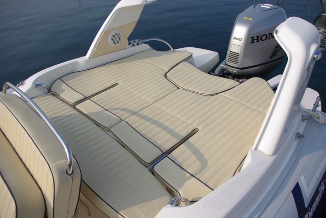 Motor je s svojimi 150 kilovati po moji oceni premočan za to plovilo, razen če ga boste uporabljali tudi za smučanje ali bordanje. Na čoln je možno namestiti še bimini, brez katerega si težko predstavljamo poletno pripeko.