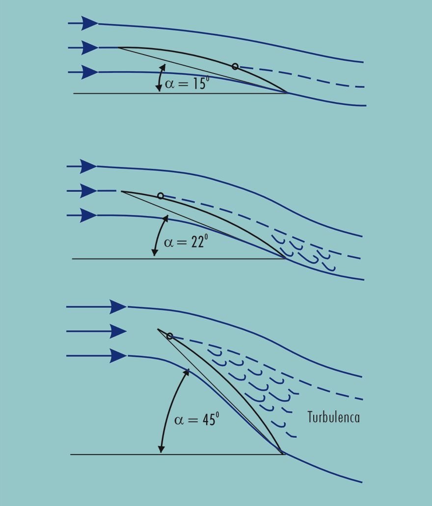 Kot natoka vetra na prednji rob jadra in turbulenca, ki se pojavlja pri nepravilno nastavljenem jadru